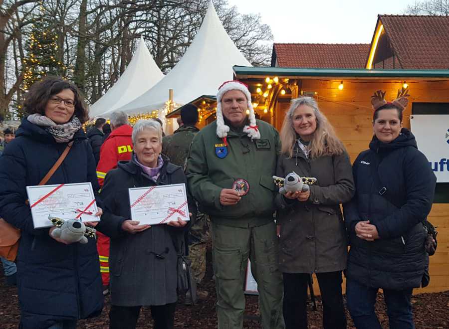(von links nach rechts: Svenja Schophaus von der Niederländischen Krebsgesellschaft e. V., Hannelore Mintus, Leiterin der Selbsthilfegruppe "Frauen mit Krebs", Torsten Fette, 1. Vorsitzende "Helfende Raben e.V.", Sonja Schmidt, 1. Vorsitzende "Frauen für Frauen Wunstorf e. V." und Carry Lericher, Leiterin Betreuungsbüro Fliegerhorst Wunstorf)